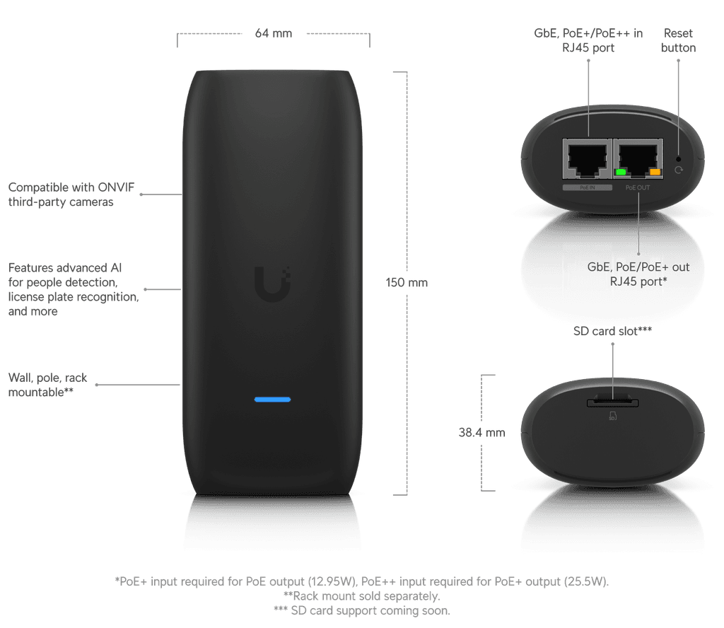 AI appliance that enhances any UniFi or third-party camera with AI detection, classification, and recognition capabilities.