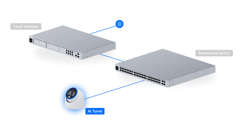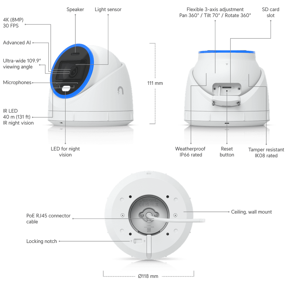 Ubiquiti AI Turret, White, All-weather,Vandal-proof 4K PoE+ Turret Camera, Enhanced AI Capabilities & IR, Visible LEDs for Night Vision,Incl 2Yr Warr
